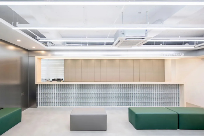 汉阳大学国际教育中心为汉阳大学的学生、公众以及外国学生提供外语教学服务。该项目旨在为学生和教师创造一个舒适、高效的环境。设计团队在每一层都安排了不同的功能区域,空间规划注重统一性与实用性。