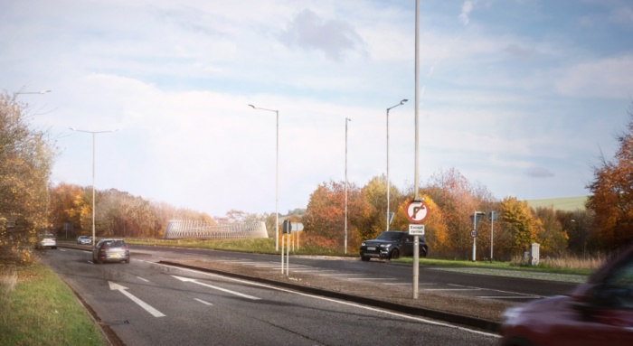 Grimshaw事务所设计的英国高铁2号项目中,装饰性屋顶和弯曲耐候钢墙将Amersham通风井围合起来。项目坐落于英格兰Amersham交叉路口,圆柱形的井口建筑物成成为Chilterms铁路10英里隧道中唯一可见的元素。