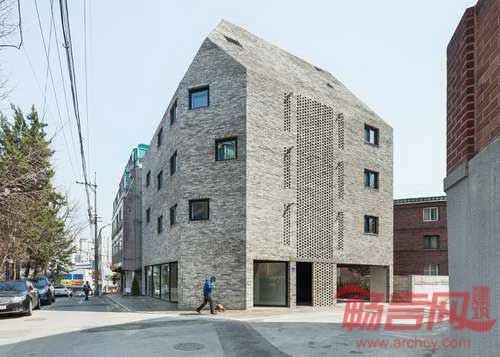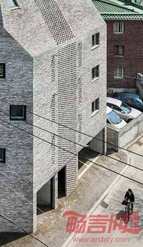 OBBA建筑事务所设计了位于韩国首尔的一座公寓楼,建筑中央开放式砖石墙壁内部具有半室外楼梯。“超越屏障”公寓楼位于首尔Naebalsan-dong街区的一块角落区域,建筑共有五层,由两栋被楼梯连接的建筑物构成,其外部体量也根据建筑缩进和自然光照等要求进行了切削。