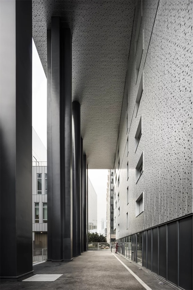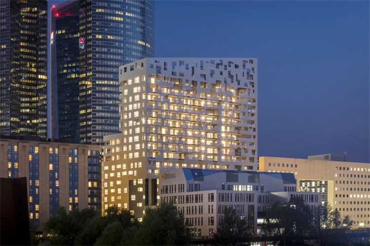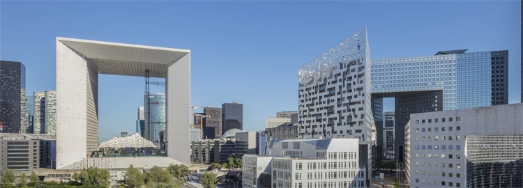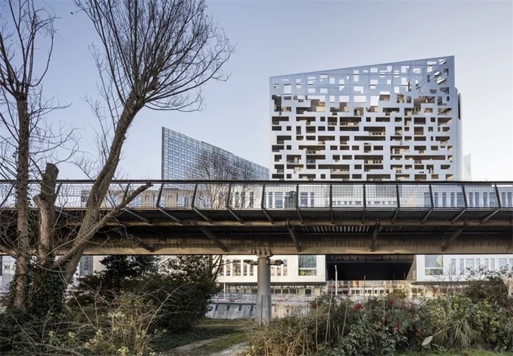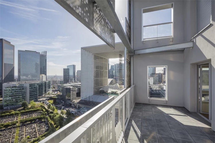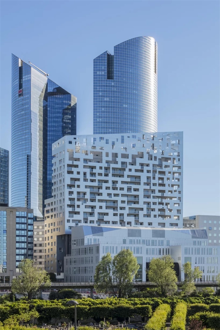 在巴黎拉德芳四商务区新建建筑的机会十分罕见。不过建筑师Louis Paillard得到了这一难得机遇,受邀设计一座“天窗大楼”。这座公寓楼拥有精巧的穿孔板外立面。1960年代,由戴高乐将军推动建设的拉德芳斯区标志着法国迈入了金融商业现代世界,呈现出令人惊奇的地上城市混合形态,如同人工岛,鳞次栉比的“公司建筑”,间或穿插众多高层办公大厦、商业中心、中空的官方纪念建筑、购物中心和公共住宅综合项目。
