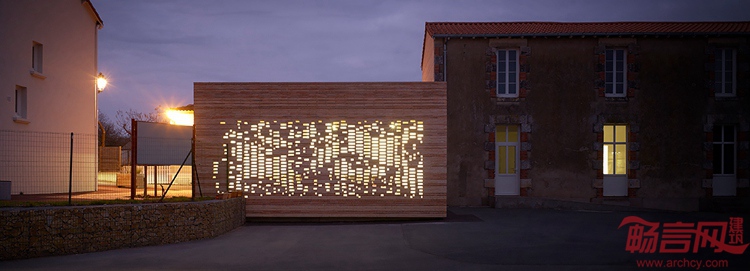 项目位于法国西部的Chaille Sous Les Ormeaux,是市政厅建筑扩建工程。新增部分呈现出白色,材料采用当地生产的砖砌块。穿孔造型营造出个性而微妙的细部构造,白天让光线照到室内,夜晚也让灯光透过建筑。项目由南特Titan工作室完成,采用的是简洁的结构模块,保留了城市特性。尺度和元素的精炼都有特别考虑,并同语境建立了联系,这些都反映在最终方案中。