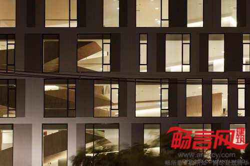 外围立面概念来自MDF图片以及刨花板生产流程。设计师将细小的材料拼接起来,组成一个生动而实用的表面。