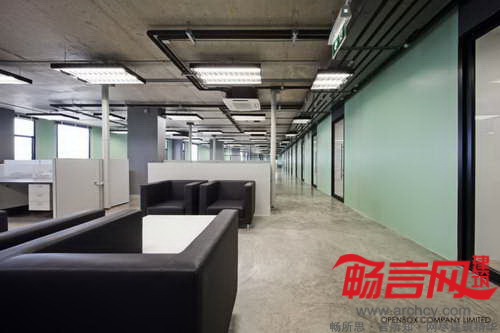 办公室的所有管件、电线都暴露在外。除了达到更高的天花高度和更健康的工作环境,这种设计还塑造了更为摩登、自然和工业化的面貌。