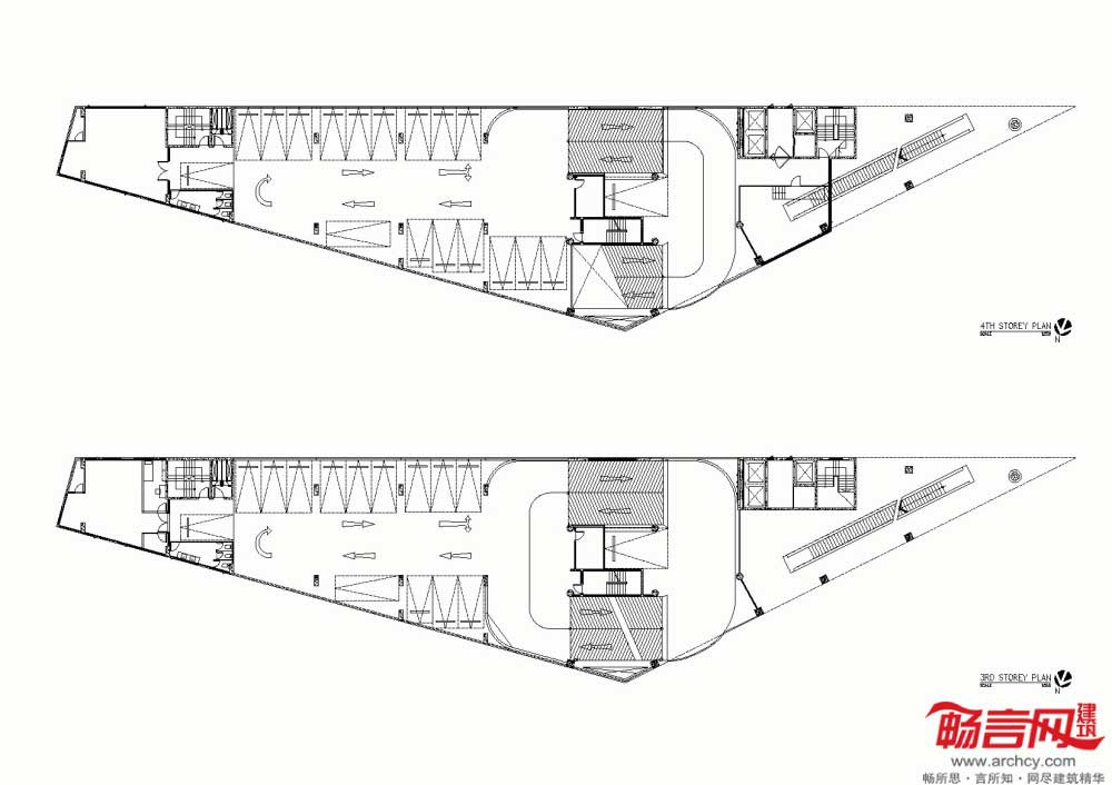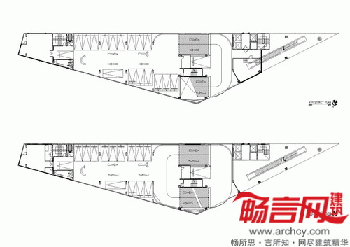 设计依据场地的形状,尽量减少空间限制的影响。事实证明:独特形状和空间的利用也是个出乎意料的机会。设计师在空间前部设置了一个三倍高度的开敞门厅。