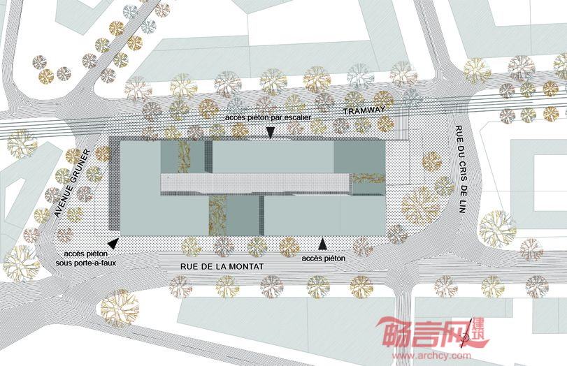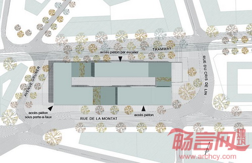 项目场地位于法国Saint-Etienne市和Chateaucreux新社区之间的关键连接点,形成了入口位置。同时,这里还是吸引一系列政府机构的“磁石”,包括地区发展局、税务局等机构。服务和休闲设施也会占据一席之地,比如餐厅、咖啡馆、旅游局和都市区域。