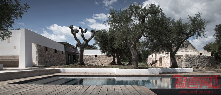 CEA事务所设计了位于意大利南部的JMG住宅。业主主要诉求是营造建筑同周边环境的紧密关系,同时不影响舒适性和迷人家居空间。为了统一先前石头屋和新建I型住宅,设计师创造出一个农家庭院。该结构包含另一方向的业主的起居和睡眠区域,大扇玻璃窗俯瞰风景如画的谷地和用于客房的石屋。
