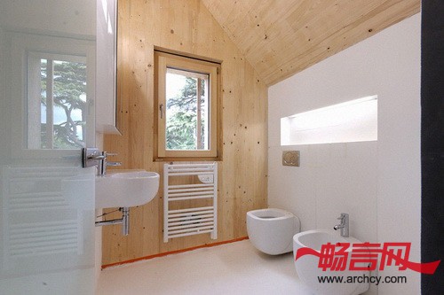 设计原理:由于住宅由双层的外墙,所以它能很好的与建筑场地融合。住宅的北面是封闭的,这样能减少热量流失;南面是开放的,这样能吸收更多的太阳光和热量。美学角度上,它非常有雕塑艺术品质感,同时看起来也是传统住宅的抽象式再现。