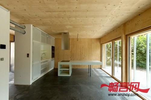 “这是一座没有供暖系统的住宅。窗户和预先定制的墙壁的保温性很好,它让住宅的热源只是阳光和住户本身就可以了。热回收通风在不用加热的过程就能够提供新鲜空气。