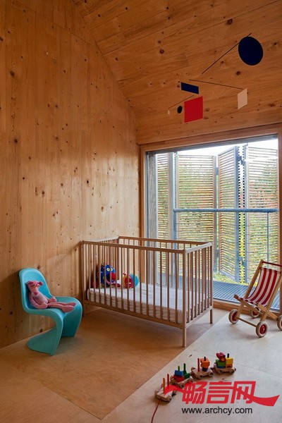 项目描述:住宅的第二层外墙用坚固的木板做成,它围住了整个建筑的结构。在外墙上面有几个用竹子做成的大扇窗户。竹子的颜色会随着时间慢慢变暗,这是从Ile-de-France地区的传统谷仓中获得灵感设计的。它从住宅前面的窗户一直向北面穿过去,直到屋顶的展开处结束。竖直方向的竹子百叶窗以大扇凸窗的形式安装在建筑的南面,这既保证了阳光的充足,又能遮阴。屋顶的光伏电池板完成了住宅的整体功能设计,它每年的发电量为3200千瓦。地基是住宅里唯一使用混凝土的地方;整个建筑结构用大型的实木板组装而成,它们是在车间里预先定制的。