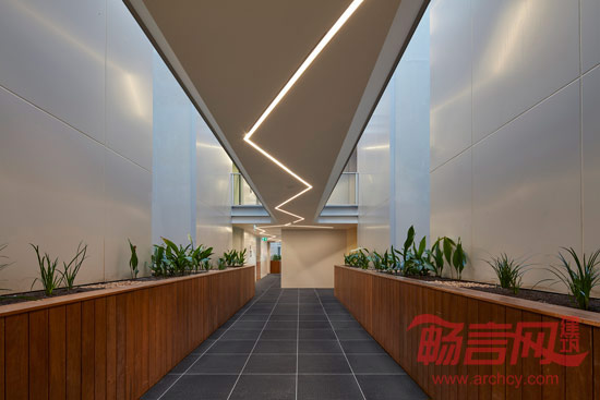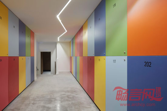 为了增加公寓住户在公共区域的舒适度,楼内公共活动区域被设计成天井,仿佛整栋公寓的“肺”一样——提供日照光线和自然通风,同时也可以种植绿色植物。