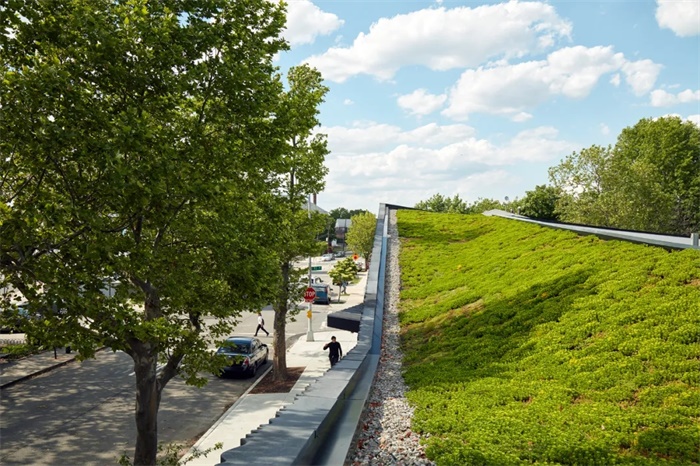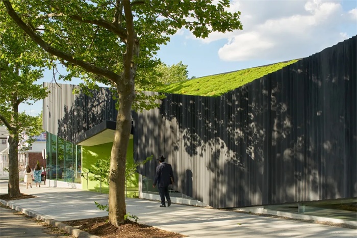 在纽约的Kew Gardens Hills社区,一座崭新的图书馆正在成为社区的骄傲。图书馆的设计巧妙地将书库和服务空间置于明亮、开放的房间之中,而绿色屋顶不仅美观,还有助于控制径流,成为邻里的特色。立面采用波纹玻璃和纤维增强混凝土,不仅支撑建筑,也向外界展示图书馆的活力。