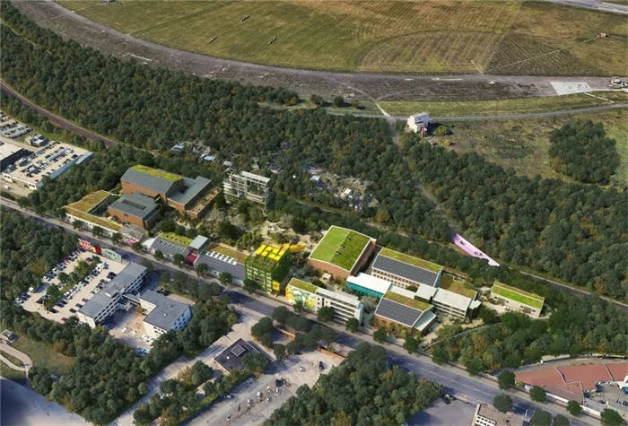 绿色景观、新的屋顶隔热层和建筑玻璃幕墙上的遮阳帘,均缓解了建筑内部夏季热量的增加,提高了建筑的气候适应能力;低温地采暖设备也在寒冷的月份调节了室内气候。所有的照明都换成了节能的LED系统,卫生设备也替换成节水系统,包括低用水量的厕所,它们将由园区雨水收集系统回收的雨水冲洗。