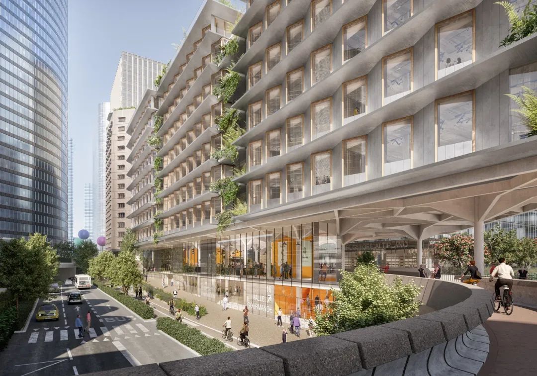 项目是巴黎商业区计划的一部分,该计划旨在成为世界上第一个后碳商业区。设计旨在振兴目前被道路基础设施所掩盖的城市商业区,并引入混合用途开发和新的公共空间。