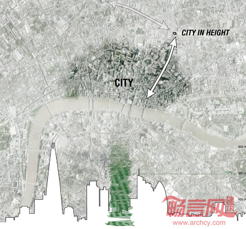 着重关注坡道设置使其满足高楼与伦敦城通达便利。“The city in height”朝向A10主轴和通向伦敦市区的索迪治街道。