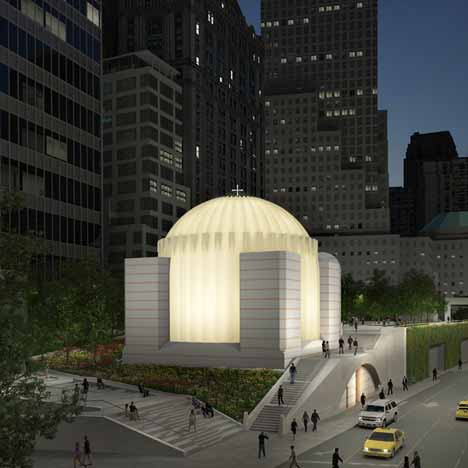 西班牙建筑师卡拉特拉瓦设计的纽约希腊东正教教堂正在施工进行中。该项目位于世贸中心原址,占据了911国家纪念公园边缘自由路130号场地。设计方案从若干竞赛方案中脱颖而出,其灵感来自伊斯坦布尔来年两座已有宗教建筑。教堂将取代被恐怖袭击碎片损毁的19世纪旧建筑。