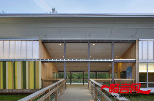 美国核桃溪市湿地保护中心是一个697平米的旅游中心,它是毗邻市市中心,是位于该市东南部的一块202 343平方米被滥用、污染的湿地改造项目的一部分,这块湿地将被开发成为一个城市宜居和自然资源丰富的保护中心。通过恢复利用这块湿地,该保护中心能够提高公众对这块城市湿地的重视和保护,让市民以这个天然湿地为傲,同时促进这个城市湿地地区的经济发展。中心还提供一个“静逸区”,这样既促进了游客与自然的交流,又能保留湿地的自然美景,既能保护湿地物种的天然栖息地,又能使游客的心情愉悦。