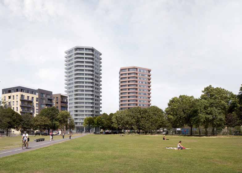Karakusevic Carson公司和David Chipperfield建筑事务所设计的两座六边形建筑通过了伦敦市政府规划审批。项目位于伦敦Hackney区,属于Hackney委员会再生计划三期项目,将为该地区提供198套公寓。建筑师Paul Karakusevic表示,“双方合作非常愉快,建筑成为Colville总体规划的积极组成部分,为新兴增添了自然的入口。”六边形楼面为每楼层提供三到六户住宅,六个方向均带有大阳台,提供面向北侧摄政运河和南侧公园的广阔视野。