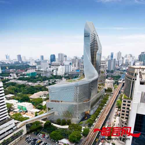 此项工程是在139355平米的土地上建造一座五星级宾馆,形成一个集商业及娱乐于一体的豪华酒店中心。大楼外观蜿蜒之处是大楼的两个竖直光井(光井:阳光可以通过光井照射到楼内没有自然光线的区域内,为这些空间提供自然照明,此外,光井也有助于空气流通),这恰好能让泰国强烈的日光照射到大楼的室内花园和阳台上。