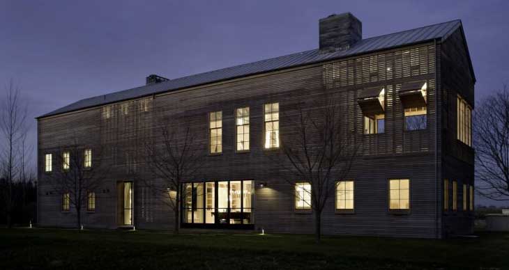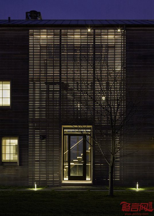 项目位于纽约州Hamptons,由Leroy Street工作室设计,带有木质的遮阳窗,使建筑的外观非常柔和,也在夜间有种薄纱般的半透明感。项目坐落于长岛南岸海滨的Wainscott,百叶窗住宅旨在回应其所在的地理位置。木质的框架,矩形的造型,单面坡屋面,均参考该地区曾经普遍存在的谷仓建筑。住所外立面和开窗也符合文脉语境。