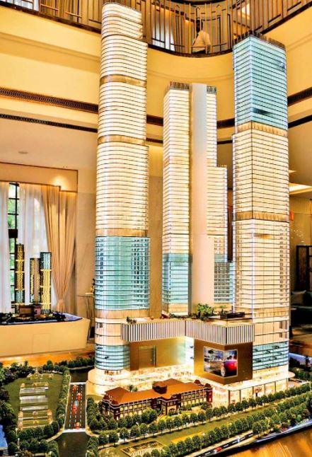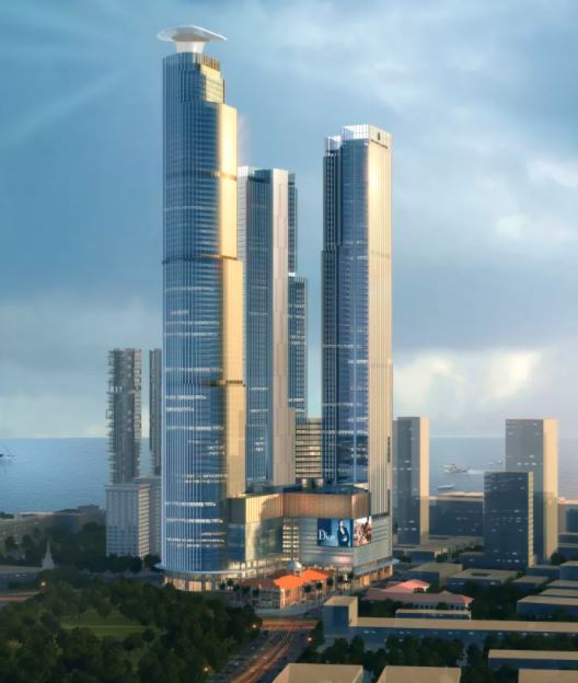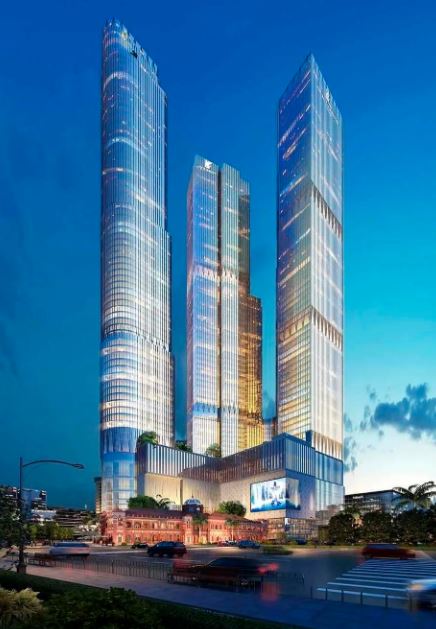 项目是由3栋塔楼及裙楼组成的国际级城市综合体。A塔高326米,B塔高305米,C塔高360米,总建筑面积40万平方米,功能涵盖丽思卡尔顿、JW万豪两大奢华五星级酒店以及豪华公寓、奢饰品商业、高端写字楼。