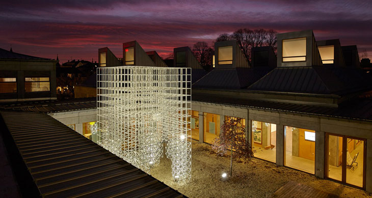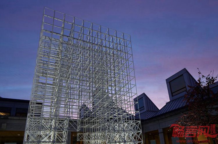 SOM设计了丹麦Aalborg的约翰伍重中心圣诞树场馆。这是一个格栅式场馆,位于中心的庭院中。中心是伍重本人2008年逝世前完成的最后一个项目,圣诞树雕塑构成SOM工程展览的一部分,该展览名为“与天空比高:SOM建筑工程”。