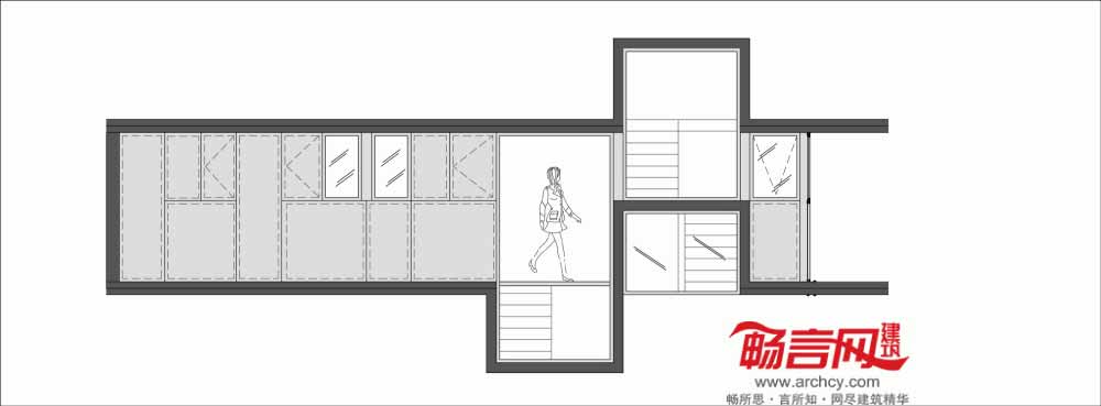 第二单元公寓围绕庭院而建,在二层交错排布;通过透明和磨砂玻璃的运用,将室内空间的设计展露出来。