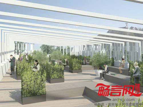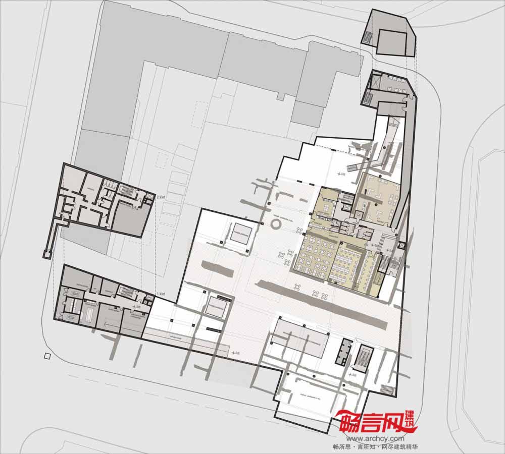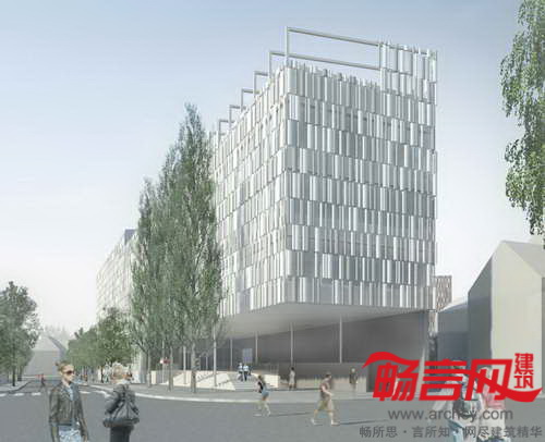 图书馆项目为“翼”结构,建筑低层是图书馆区,朝向东北边的法国革命广场;公共入口翼构成了Emonska和Zoisova街道拐角,协调了斯洛文尼亚Zoisova十字路口繁忙交通和革命广场的喧嚣活力的平衡关系。