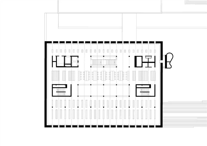 新楼填充了老馆所在地块的剩余空间。建筑粗略地参考了威廉宫的屋脊高度,与老馆分开,使街道能够贯通至建筑群的下方。建设新地下停车场使以前的入口处可形成一个宽敞的广场,广场的另一侧是国家档案馆。从城市角度看,旧阅读室的立方体积现在位于新广场的中央。多级踏步建立了建筑与新人行道之间的连接。