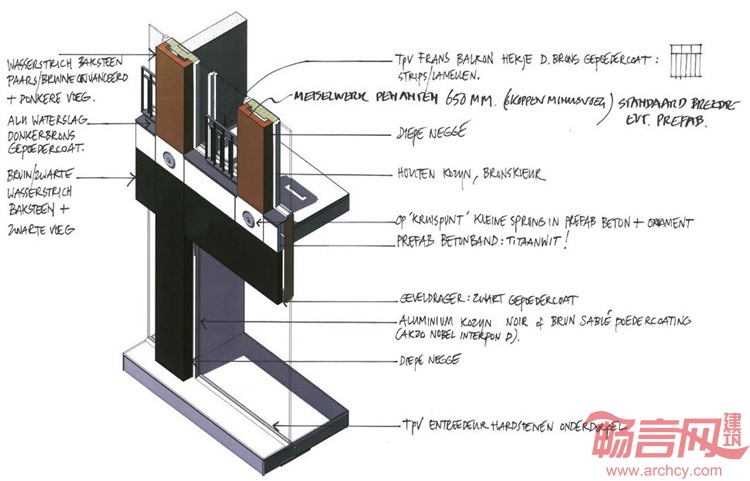 Attika工作室设计了荷兰Amersfoort的Emoticon Facade建筑。项目位于Vathorst镇现有的景观绿化带边,带有多种活跃的功能,涵盖图书馆,剧场,学校,商店,公寓。项目周边有一棵树龄达150年的老橡树。项目包含两座紧邻建筑,在细部上各有不同。