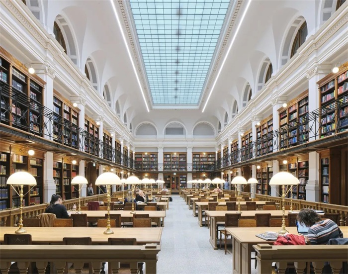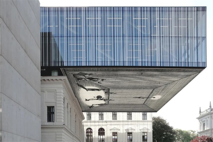 奥地利卡尔·弗朗岑斯格拉茨大学图书馆的重新设计使图书馆焕然一新:双层高的玻璃盒子平台从在原建于 1895 年的历史建筑阅览室上悬挑而出,新旧立面也由玻璃幕墙连接。