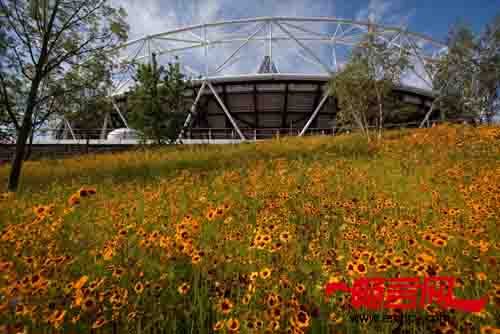在2012年伦敦奥运会和残奥会到来前两年之际,奥林匹克体育场周围铺满金色野花,蜂鸣蝶舞。