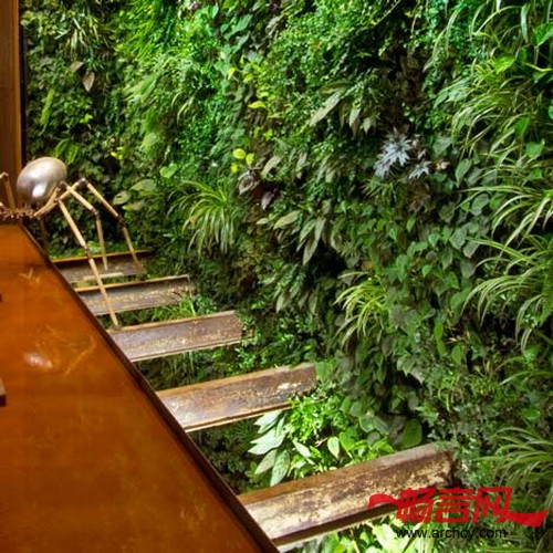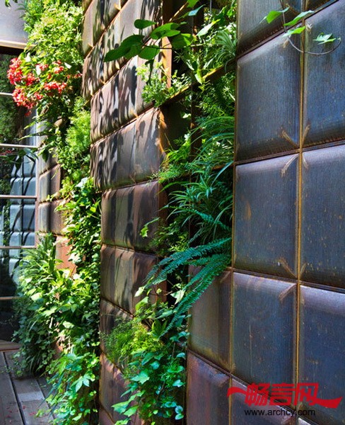 垂直花园设计建筑事务所(Landscape architects Vertical Garden Design)设计了这面绿墙和朝向后面庭院的第二座墙。