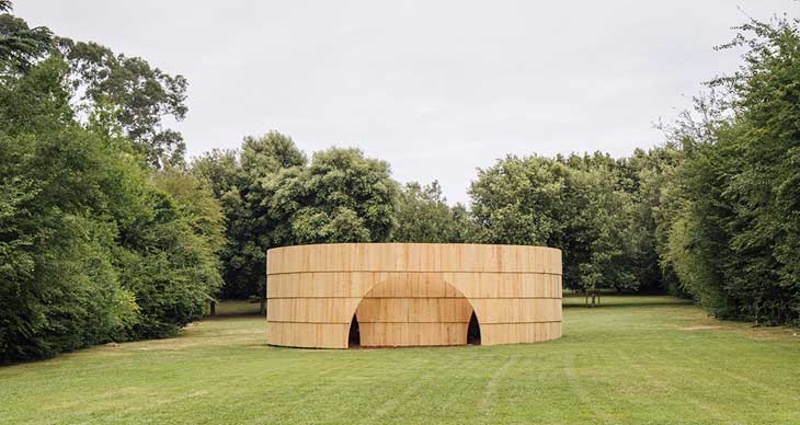 Diogo Aguiar工作室完成了一处临时环形场馆设计,可举办电影放映等活动。项目位于葡萄牙波尔图的Serralves文化馆中。该“花园馆”临近此前由depA设计的带有反射表面的建筑。项目带有连贯的外立面,包含四条垂直的木板条。建筑设有三个独立入口,通过内部环形道路可进入剧院。