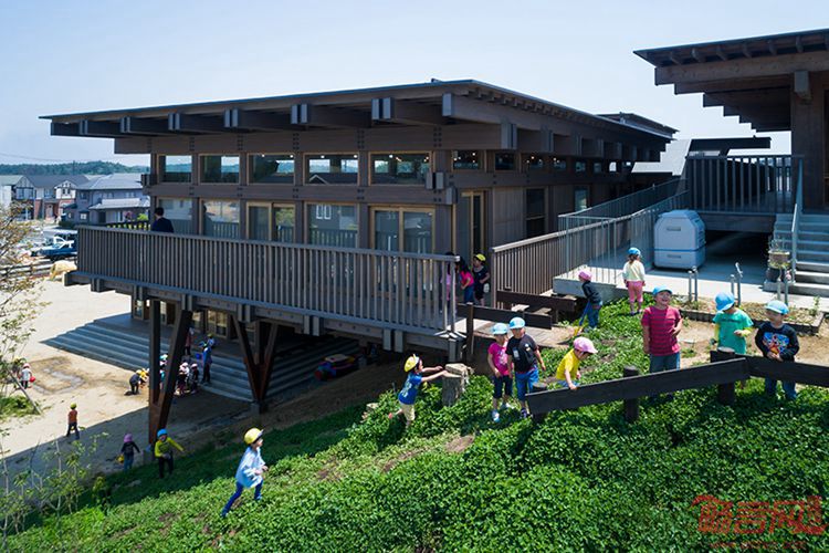2012年,Tezuka工作室完成了日本大海啸后的某幼儿园重建工程。该项目得到了联合国教科文组织的支持,运用了当地的杉树,包含一系列相连的元件,涵盖可根据需要被拆分的大房间。设计师表示,木材了不起的地方在于,细微之处的连贯性能够维持。儿童经常触摸木材,并感到这来自于自然,而他们可不会摸混凝土。四年后,设计师回归了这一场地,完成第二个项目,是对幼儿园进行扩建,以适应更多学生的需求。由于没有足够的成年大树,项目运用了若干小树,以延续此前的风格。