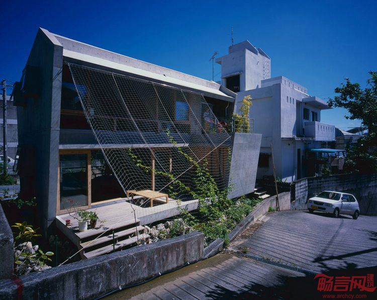 项目位于日本冲绳岛上,是一座混凝土住所。宽大的屋檐和金属网天棚最终将被绿植覆盖,为屋内带来凉爽。大阪芦泽龙一事务所的“风屋”位于14世纪Shuri城堡西南的一个居民区中,在东中国海的岛上。建筑是对冲绳乡土住宅的临时改造,设计师向周边环境致以敬意,保持了人和自然之间的和谐共生。