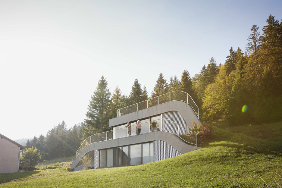 JDS建筑事务所设计了位于法国乡间的Jura别墅。青草覆盖了建筑的曲面屋顶,设计师营造出当地田园住宅的当代版本。项目坐落于法国Jura地区Bois D‘amount村,是一个度假屋。项目名称来源于连绵起伏的Jura山,背靠山坡,面朝草甸。设计方案将房屋部分嵌入地形中,帮助缩小对环境的视觉影响。