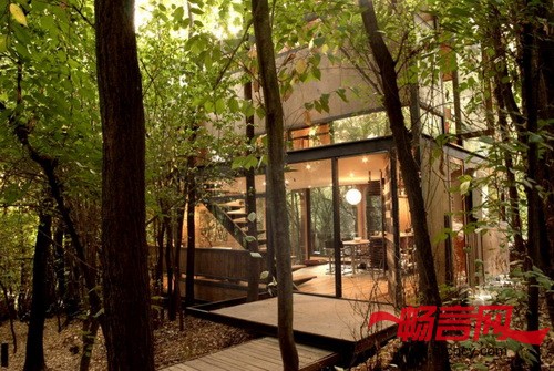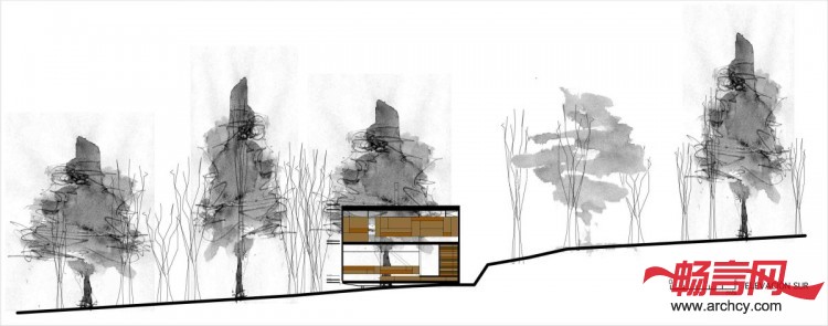 建筑师Robert Frost说:“森林是深邃阴暗的,却非常漂亮,所以我们将住宅隐蔽在这静谧的森林中。”