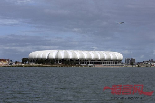 该体育场的独特结构得益于它与众不同的低层湖边设置,为非常疲倦的市容添加了一个非常现代化的元素。与约翰内斯堡的足球城或内尔斯普雷特的Mbombela体育场设计有所不同,该体育场的设计没有吸纳地方建筑特征和采用当地的建筑材料。唯一与当地有关的便是该馆的名字。“该馆以南非前总统纳尔逊·曼德拉的名字命名,从体育雄心和公平竞争的角度,形象地将700多米长的走廊比喻为一个‘漫长的路程’”。白天,白色的屋顶如轻盈的花环一般依附在主要的清水混凝土结构上,夜晚,被照亮的大型背光膜区域则变成了一盏在暴风雨中不灭的明灯,所以无论在什么时候,这座场馆都是极其形象生动的。从建筑固有的生态象征设计的可持续性方面来说,“屋顶的几何形状很符合当地的条件,不仅可以使人群免收太阳的暴晒,还可以远离暴风的袭击”。PTFE屋顶外膜可以透过自然光并进行通风。此外,该项目选址在城市的港口附近,方便了从国外进行物资运输。
