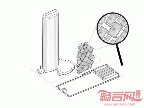 REX建筑事务所和Front公司在美国得克萨斯州达拉斯艺术区涉及了巨大的Surya铝制遮阳板项目。项目甲方是达拉斯警察与消防养老基金会、Nasher大厦开发商,目的是防止阳光经过建筑折射到邻近的、Renzo Piano设计的Nasher大厦上。项目方案是一座400英尺高的由“花朵”组成的结构,这些伞状结构能如同花朵一样绽放、阻隔刺眼的光线。因此,邻近的艺术馆和住宅楼中的人们均能受到这座大伞的庇护。
