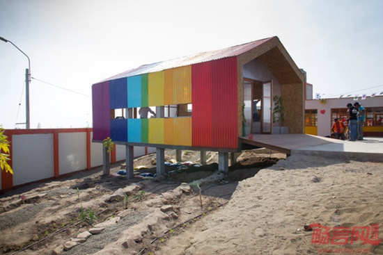 项目由51-1建筑事务所设计,位于秘鲁Ventanilla,面积54平米,于2013年完工。所在地区干旱少雨,使贫民区人民的生活环境较为恶劣。儿童的生存环境缺少树木植被,其父母在2小时距离外的城市终日工作。在政府和非盈利组织的支持下,沙漠彩虹餐厅诞生了。该项目面向3-5岁儿童,在老师的帮助下,他们学习种植作物,做饭,和同伴共享食物,并学会欣赏自然的健康气息。