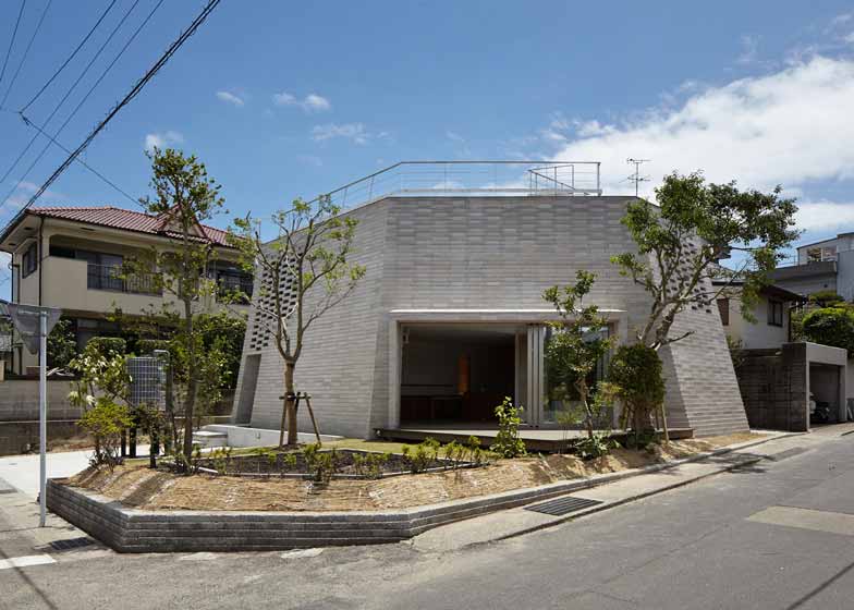 Aray建筑事务所设计了位于日本西南部的一栋住宅,特点是使用了混合火山灰的水泥砖材料。建筑坐落于日本鹿儿岛,2层住宅容纳了一家六口,业主要求住宅设计必须高效节能,包含自然的制冷、供暖系统。建筑师Asei Suzuki采用当地砖块材料,该材料是融合火山灰泥的水泥。火山灰砖块被用于房间内外墙面,表面没有添加涂饰层。