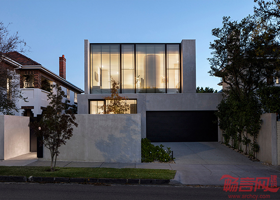 Davidov Partners建筑事务所在澳大利亚墨尔本设计了一座由大面积玻璃和简洁混凝土建成的房子。