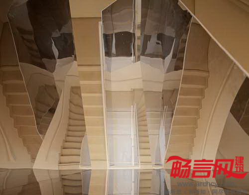 铬钢和大理石的分别使用将豪华的大堂从视觉上一分为二。