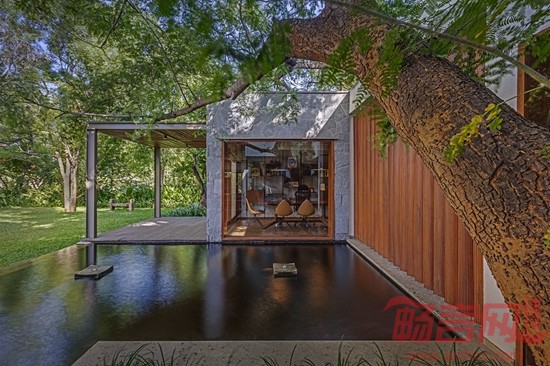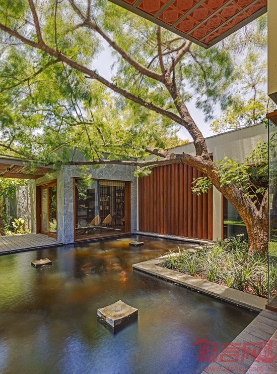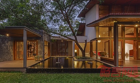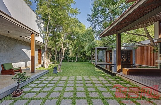 Krishnan别墅位于印度班加罗尔市,占地16000平方英尺,周围有许多成年树木,为此,建筑师设计了相对较矮的建筑结构,既可以体现当地的建筑审美,又可以适应周围的绿植环境。
