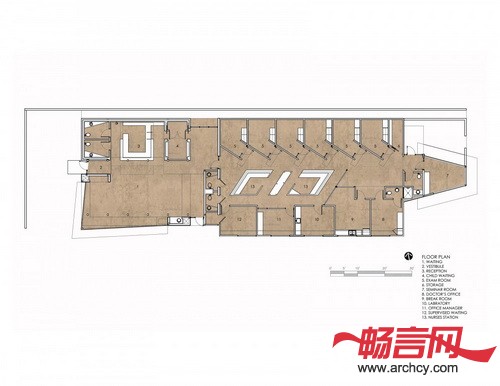 诊所里不但有隐私较好的检查室,也有比较开放的空间。护士站和候诊区都非常宽敞而且氛围温暖柔和,同时充足的自然光线还使这里十分舒适。通过对材料的选择、安排和布局,使诊所的室内和室外都洋溢这一种舒适和体贴的感觉。