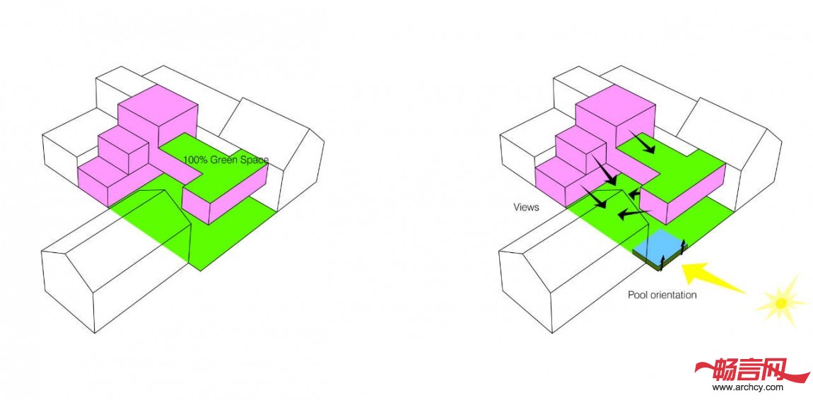 通过这种方式,设计师很好地解决了住宅视野和“被隐没”的问题。而客户从项目一开始便担心的问题都得到了解决。