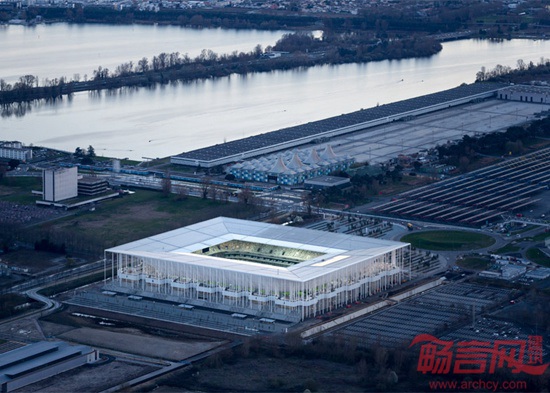 Herzog & de Meuron建筑事务所设计的法国波尔多体育场已经建成。体育场将成为2016年欧洲足球锦标赛的举办场馆之一,届时将承办四场比赛。建筑外设900根白色立柱,内部可容纳4.2名观众,是法国波尔多吉伦特足球队的主场体育场。尽管体量庞大,设计师希望体育场显得轻盈优雅,受到波尔多南部Landes森林中纤细的松树启发,设计了多个白色立柱造型。