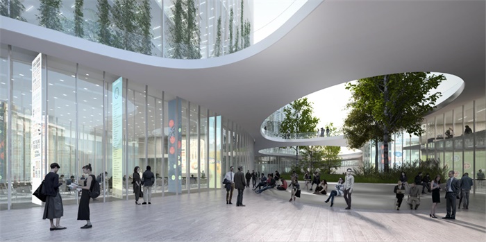 建筑采取与城市共生的开放性策略、实现大学与所在地区的空间融合。公共广场不仅是校园内的一部分,同时也为街区进行部分遮蔽。广场发挥聚合作用,吸引人群,营造出一个生机勃勃的步行区域,与周边地区进行连接,提升城市品质。