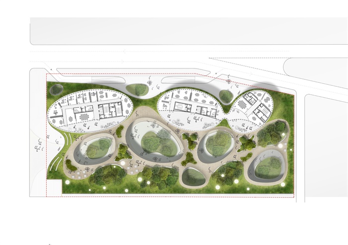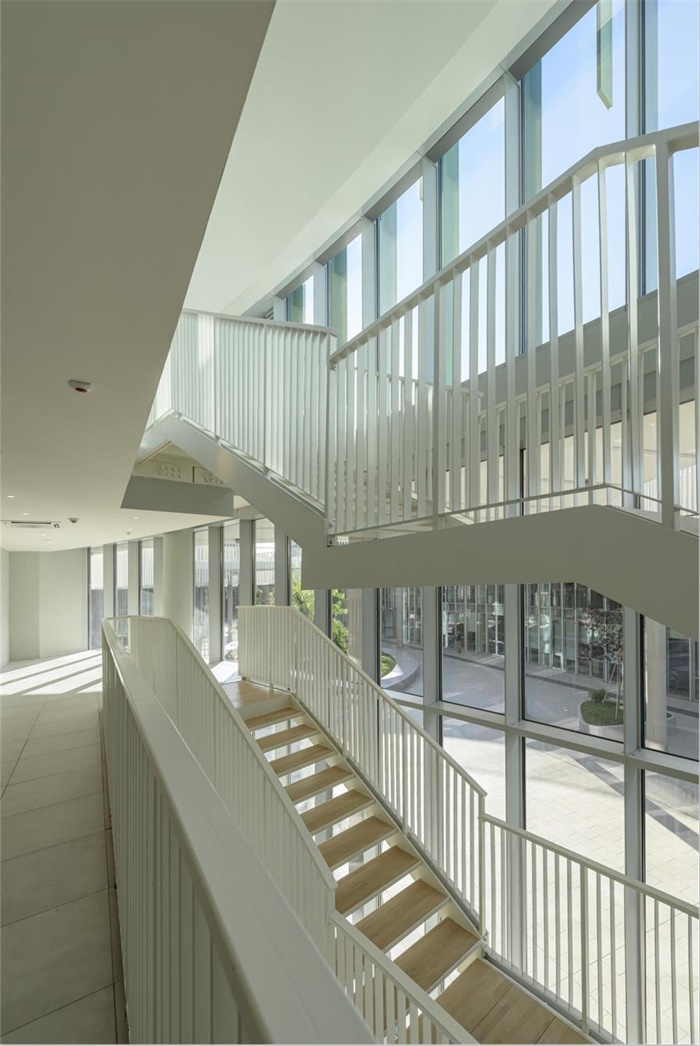 项目希望为该地区提供高标准校园建筑的同时,也能构建一个适宜公众休闲、交流的场所。开放的广场庭院,草坪景观和诸多树木环绕,利用公共建筑对城市发展的引擎作用,增强社会凝聚力,使工业区转变为一个具有活力的目的地。