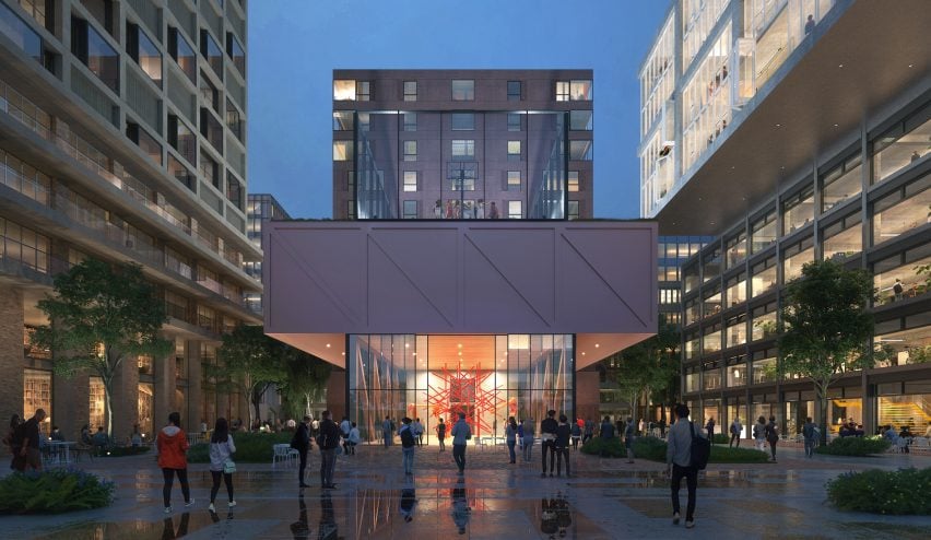 这个8万平方米的项目设计了六栋建筑。虽然每一个都会有不同的外观,但会有交错的形状,为户外“绿色静修”创造空间。